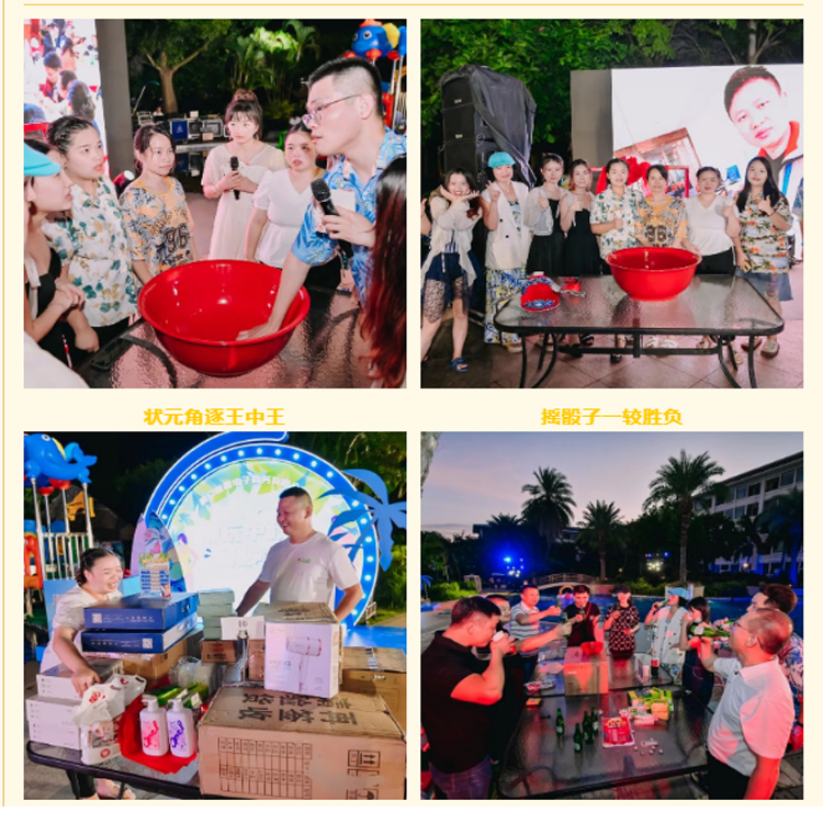 Water gun battle tug of war on water tired and happyEat meat, drink wine, talk and laughThe performance and game interaction of the on-site staff won applause. Vivid and funny hosts, passionate performances, affectionate singing and other wonderful programs have pushed the evening party to one climax after another, but the Mid Autumn Festival, the least activity, is the forum!The ping-pong sound of dice in the bowl and the enthusiastic cheers of colleagues keep rising one after another, all of which symbolize the liveliness and joy of this activity.Entertainment programs and games