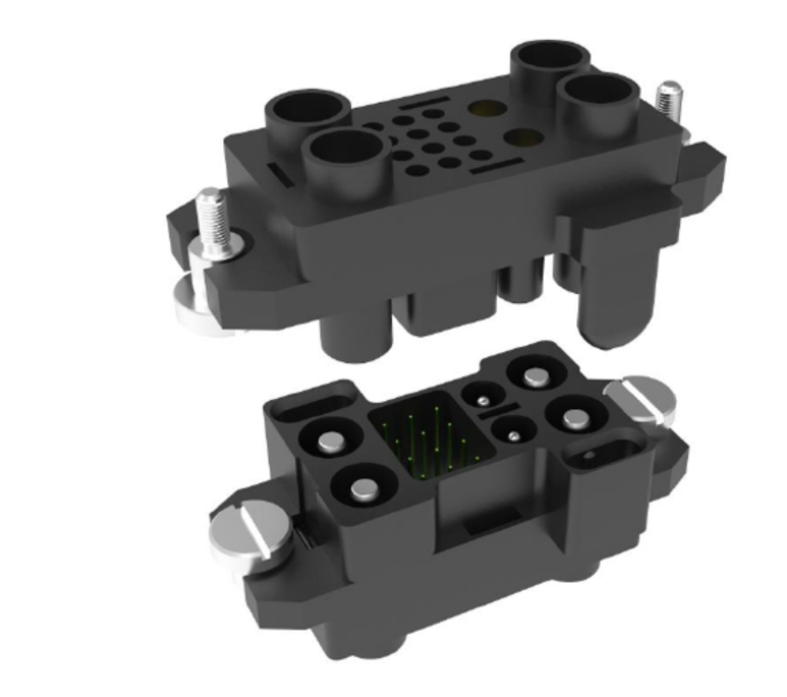 The rated current power terminal of the TE new generation BPSC Hybrid blind plug connector can reach a unit of 70A, with a rated voltage of up to 1000V, which can meet various application requirements. When designing products, TE fully considers the convenience of product installation and use. By balancing and allowing for a tolerance margin (2.5mm) in the blind insertion system through advance guidance and floating design, TE can accommodate mechanical manufacturing tolerances during the stacking process. This product also uses high conductivity material power pins, which have excellent temperature rise control performance. The temperature rise is stable for a long time<30 °, and the signal pin surface is plated with gold, with a diameter of ≥ 1.0mm, providing excellent and reliable signal transmission.