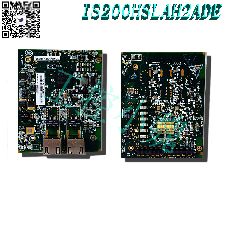 IS200HSLAH2A is a high-speed serial link interface board manufactured by General Electric for host application boards, and is part of the EX2100e regulator dual control system. The card is connected serially to EX2100e ERAX M1 and M2 to UCSB CPU M1 and M2. The top surface of the board has two jack inputs and outputs. They are placed side by side along a short edge of the board. This board has two Halo TG 110-EO 50N5 transformers. The circuit board consists of over 20 integrated circuits, including an FPGA (Field Programmable Gate Array) at U1. There are also two (female) connectors at the bottom of the board. The FA/00 code is written on the PCB. Multiple conductive sensors are integrated on the card.